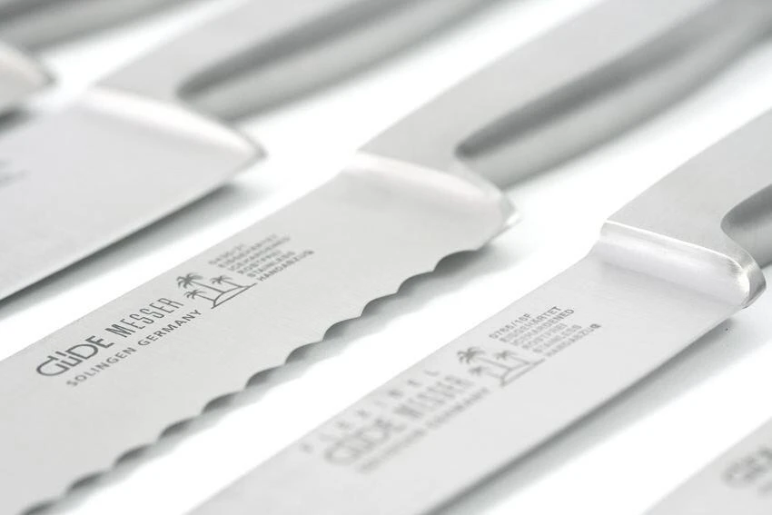 - Güde Messer niemals ungereinigt liegen lassen – besonders nach dem Umgang mit säurehaltigen Nahrungsmitteln.