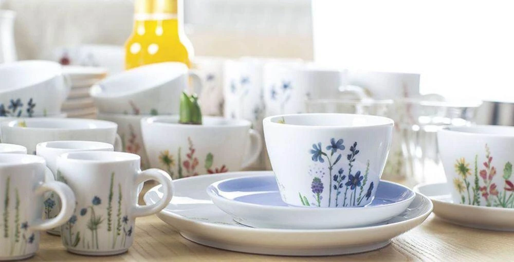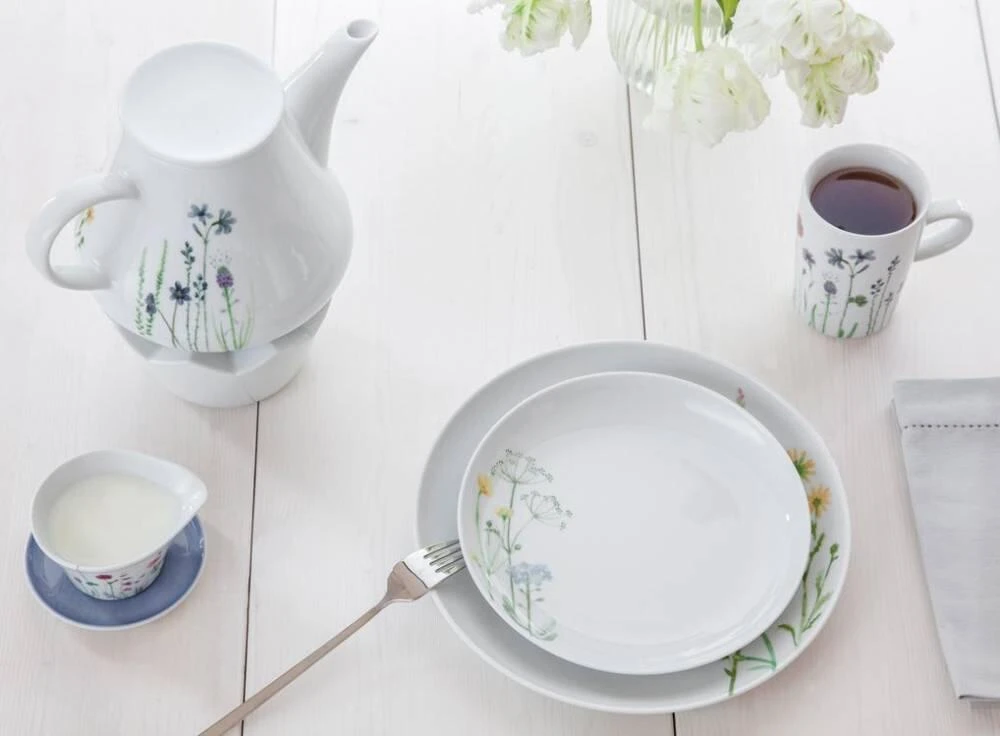 Mit der mehrfach prämierten Innovation Magic Grip in Verbindung mit der beliebten Form Five Senses im Dekor Wildblume schafft Kahla die perfekte Verbindung zwischen Funktionalität und eleganten Design: in scharlachrot, zitronengelb, violett und himmelblau erstrahlen 15 verschiedene Blumen und Gräser, die in einem zarten und atmosphärischen Aquarellstil dargestellt werden.