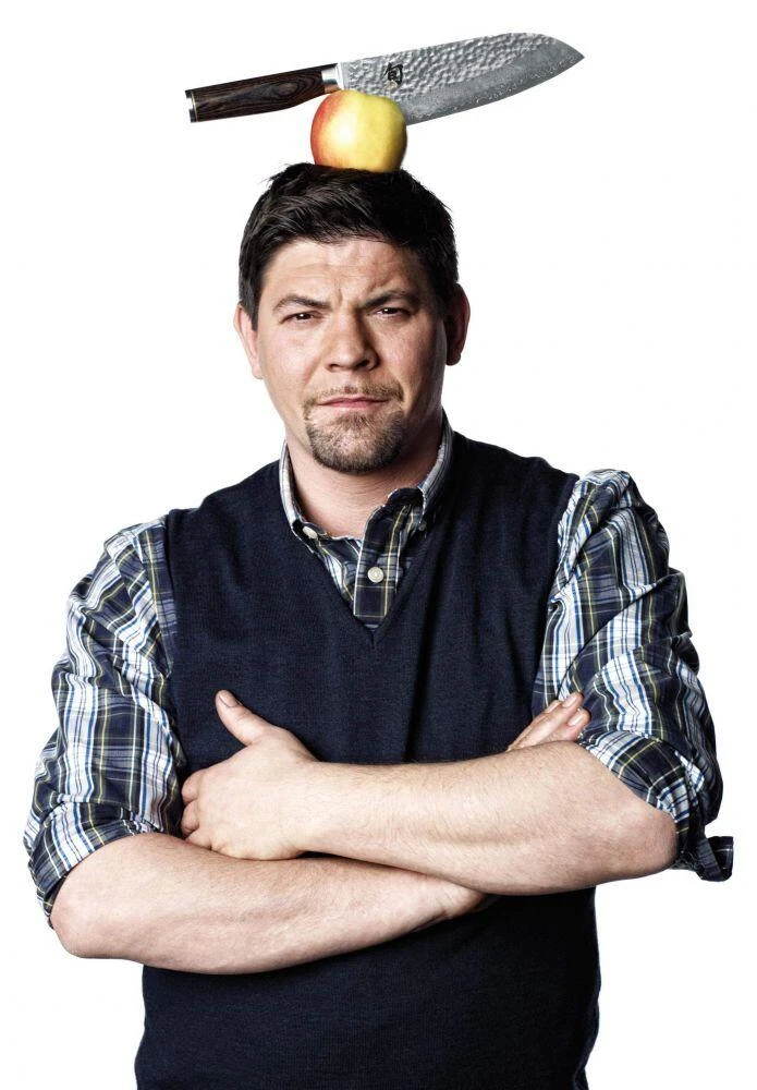 Am Griffende sind die Messer mit dem typischen „Küchenbullen“-Logo des Sternekochs Tim Mälzer geprägt.