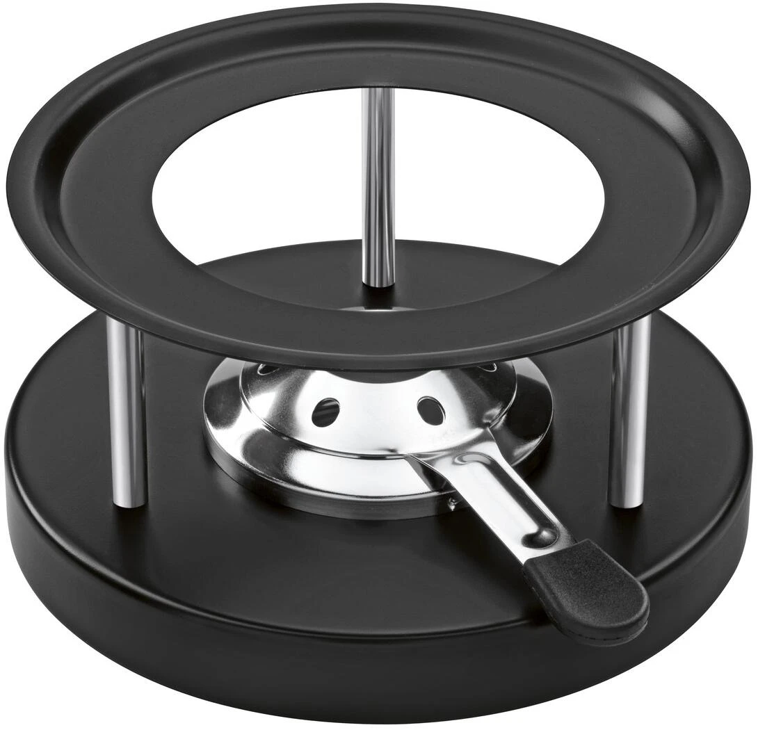 Das elegante Fleischfondueset aus Chromstahl, besteht aus: Fleischfonduetopf 2.9L ø16cm, Rechaud, Pastenbrenner gefüllt mit Brennpaste, 6 Gabeln und Spritzschutz. Einfach Brenner anzünden und geniessen.