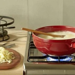 Stöckli Käsefonduegarnitur Bellavista. Fonduespaß für bis zu 6 Personen. Induktionsfähiger Caquelon aus Keramik, Rechaud mit Pasten-Sicherheitsbrenner sowie 6 Fonduegabeln sind bei dem Fondue-Komplettpaket enthalten.